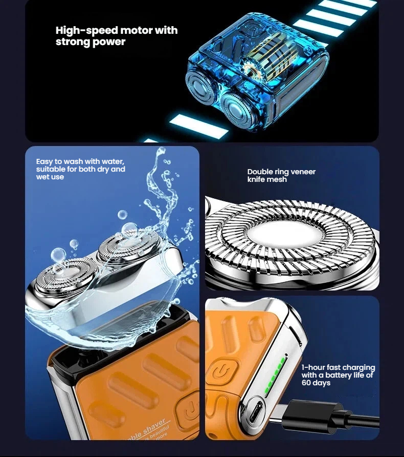 Electric shaver, ultra-clean, new style beard trimmer, mini portable shaver for men, automatic and manual
