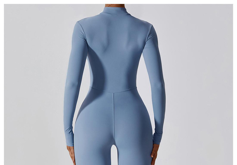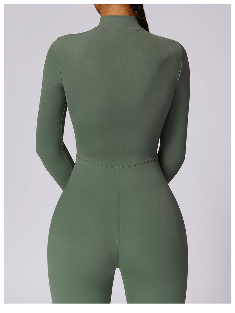 European and American zipper yoga suit long-sleeved fitness sport bodysuit female one-piece pants can be worn outside
