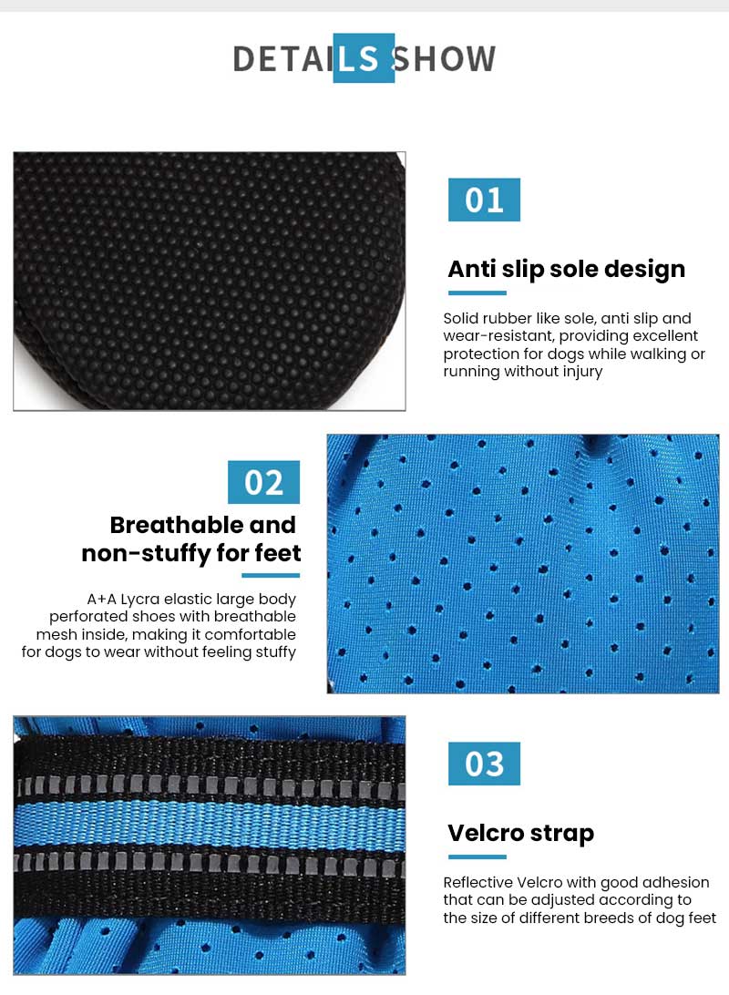 Manufacturer-supplied dog shoes and rain boots with breathable, non-stuffy solid rubber soles for medium to large dogs, pet footwear with wear-resistant soles