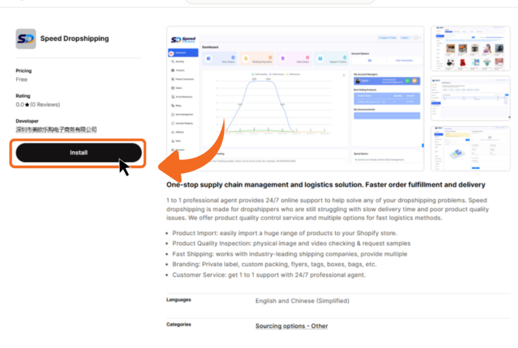 You will automatically land on the Speed Dropshipping app page in the Shopify App Store.