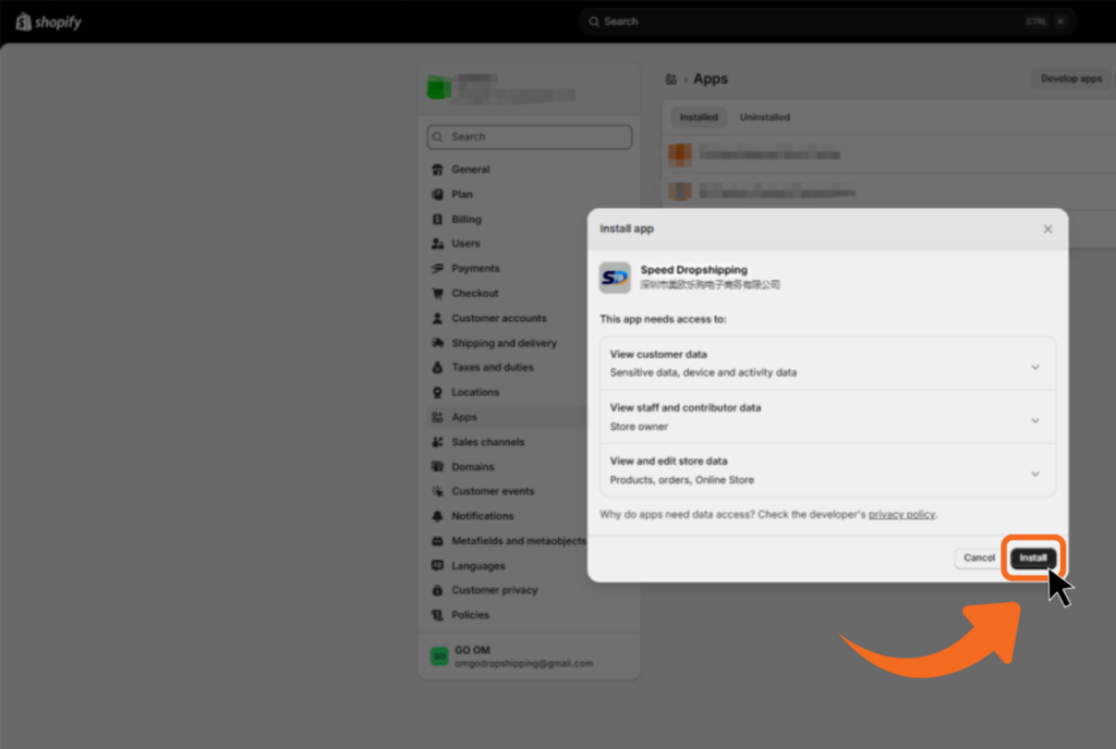 Install Speed Dropshipping on Shopify